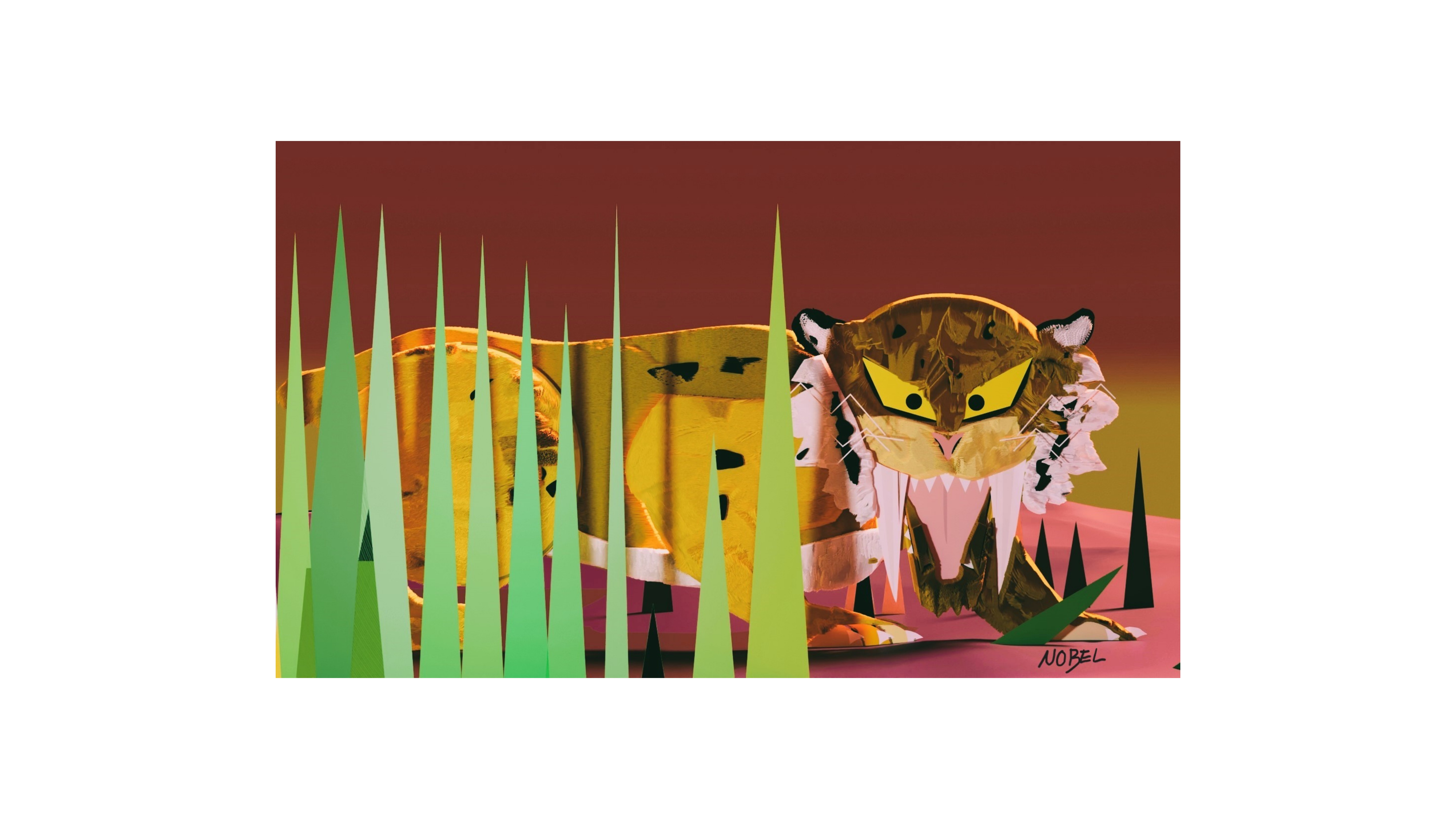 Smilodon pencil & paper sketch reimagined as 3D layered art for LinkedIn article: Shape Language.